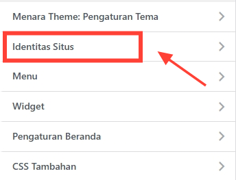 Di panel Customizer, pilih Site Identity (Identitas Situs).