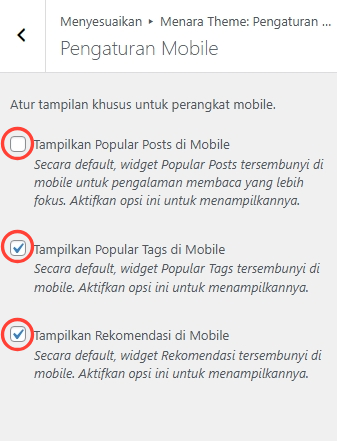 Atur sesuka Anda apakah widget seperti Topik Populer, Rekomendasi, dan Artikel Populer ingin Anda tampilkan di Dekstop dan Mobile, atau di Dekstop saja!