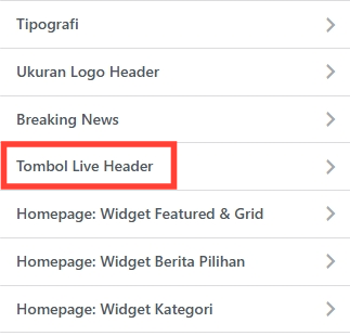 Anda bisa mengaktifkan fitur ini dengan cara masuk Tampilan > Kustomisasi > Menara Theme > Tombol Live Header: