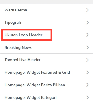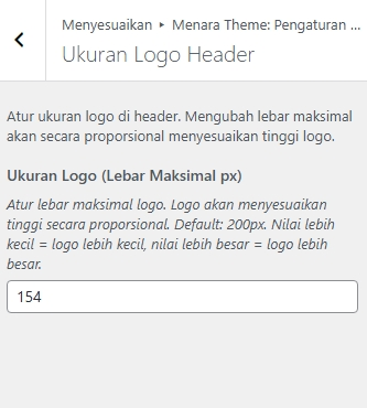 Atur ukuran logo di header. Mengubah lebar maksimal akan secara proporsional menyesuaikan tinggi logo.