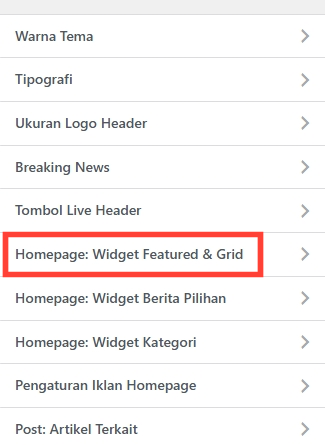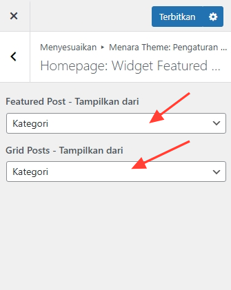 Menentukan sumber konten untuk area Featured Post di homepage.