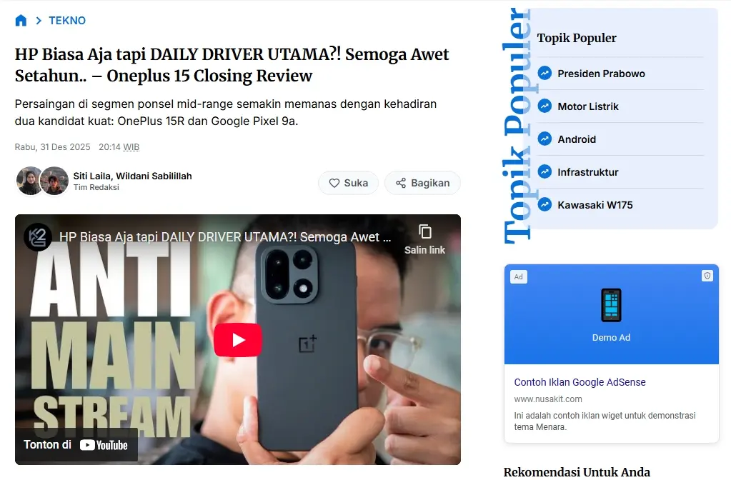 2 Style Template: Gaya Merdeka.com atau Kompas.com